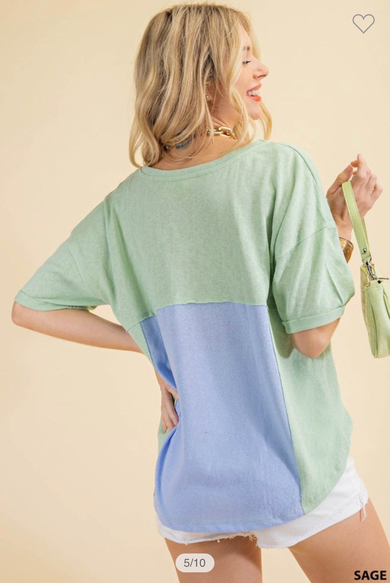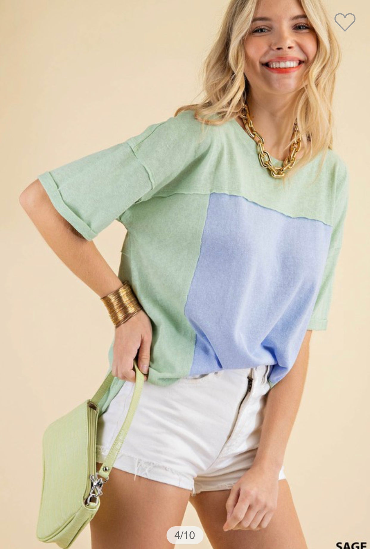 BiBi Exposed Seam Slit Striped Round Neck T-Shirt