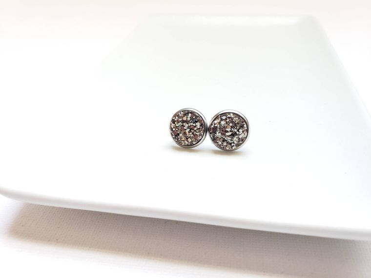 Faux druzy stones set on a hypoallergenic stainless steel setting.