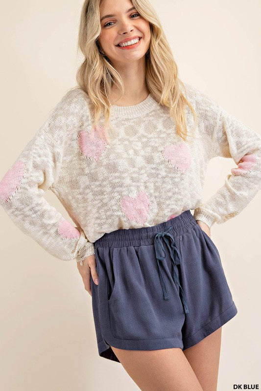 Dark Blue, Elastic Waist Shorts. Perfect to wear all summer long to look